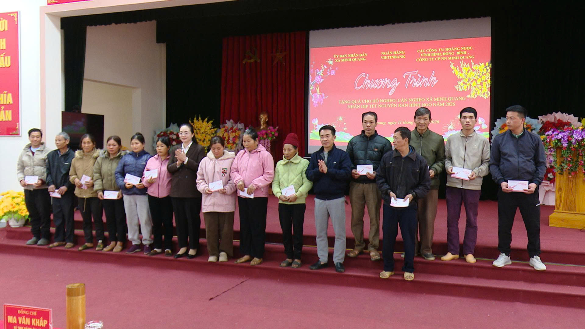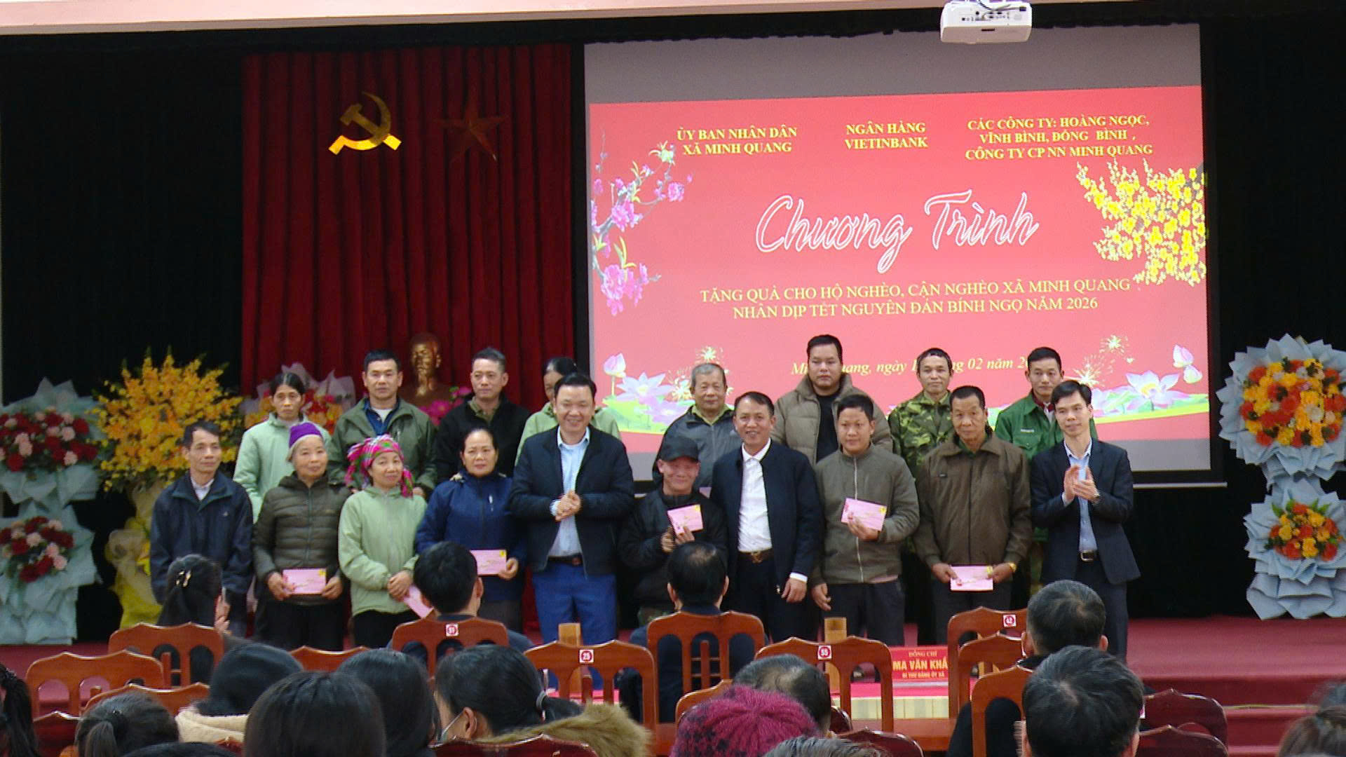 Phát biểu tại chương trình, đồng chí Chẩu Thị Khuyên, Phó Bí thư Đảng uỷ, Chủ tịch UBND xã Minh Quang đã trân trọng cảm ơn sự quan tâm, đồng hành của của các cơ quan, đơn vị, doanh nghiệp đã chung tay cùng địa phương chăm lo đời sống nhân dân mỗi dịp Tết đến, Xuân về. Đây là hoạt động thiết thực, góp phần cùng cấp ủy, chính quyền thực hiện tốt công tác an sinh xã hội trên địa bàn.