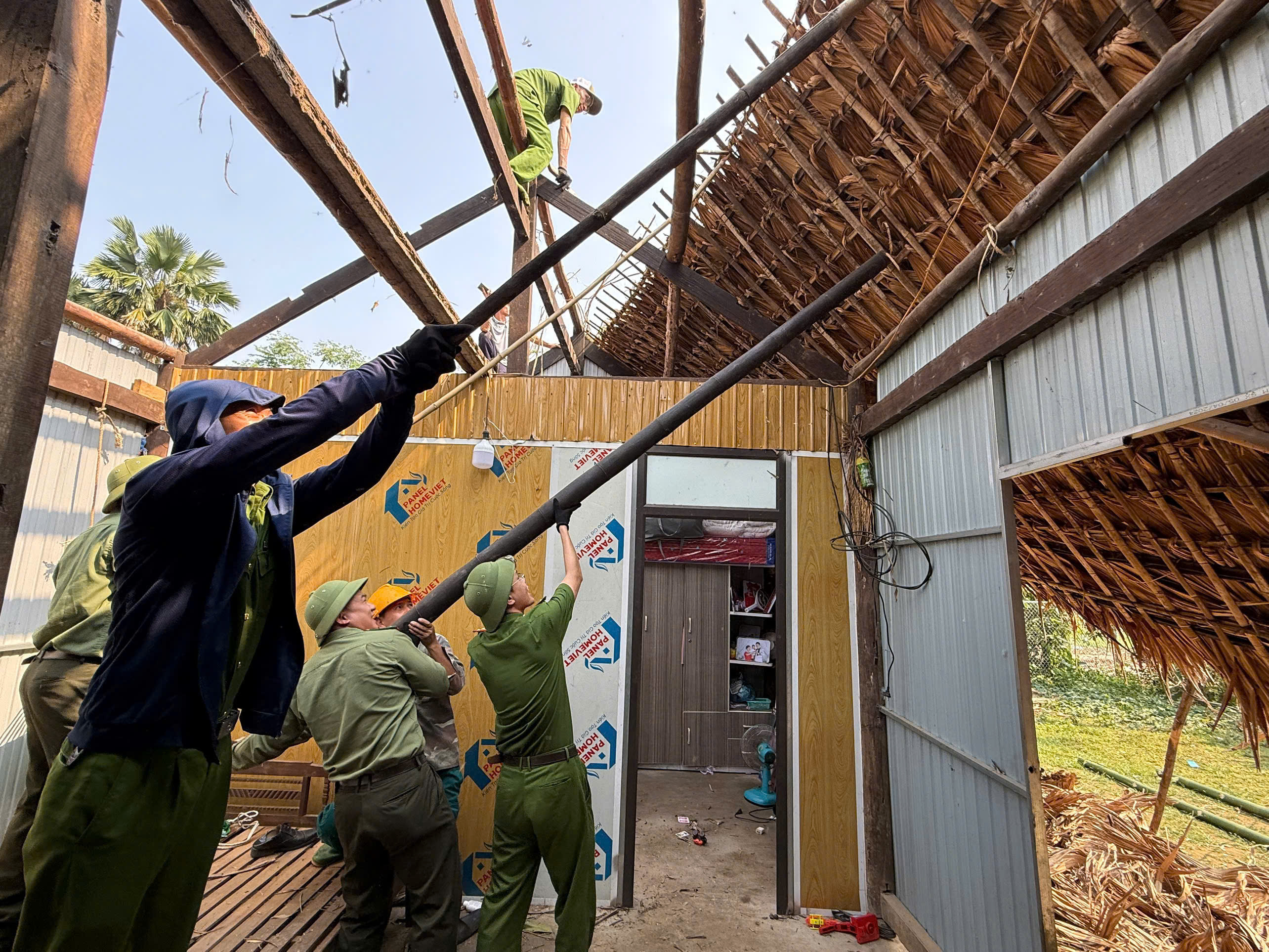 Ngay sau khi nhận được tin báo, Công an xã Minh Quang đã khẩn trương huy động cán bộ, chiến sĩ có mặt tại gia đình anh Tài, phối hợp với thôn bản và người dân tổ chức khắc phục hậu quả. Lực lượng công an đã trực tiếp tham gia thu dọn, gia cố và lợp lại mái nhà, giúp gia đình anh Tài sớm ổn định chỗ ở. Được biết, gia đình anh Ma Văn Tài là hộ có hoàn cảnh đặc biệt khó khăn của thôn. Việc bị thiệt hại do mưa bão càng khiến cuộc sống của gia đình thêm phần khó khăn.