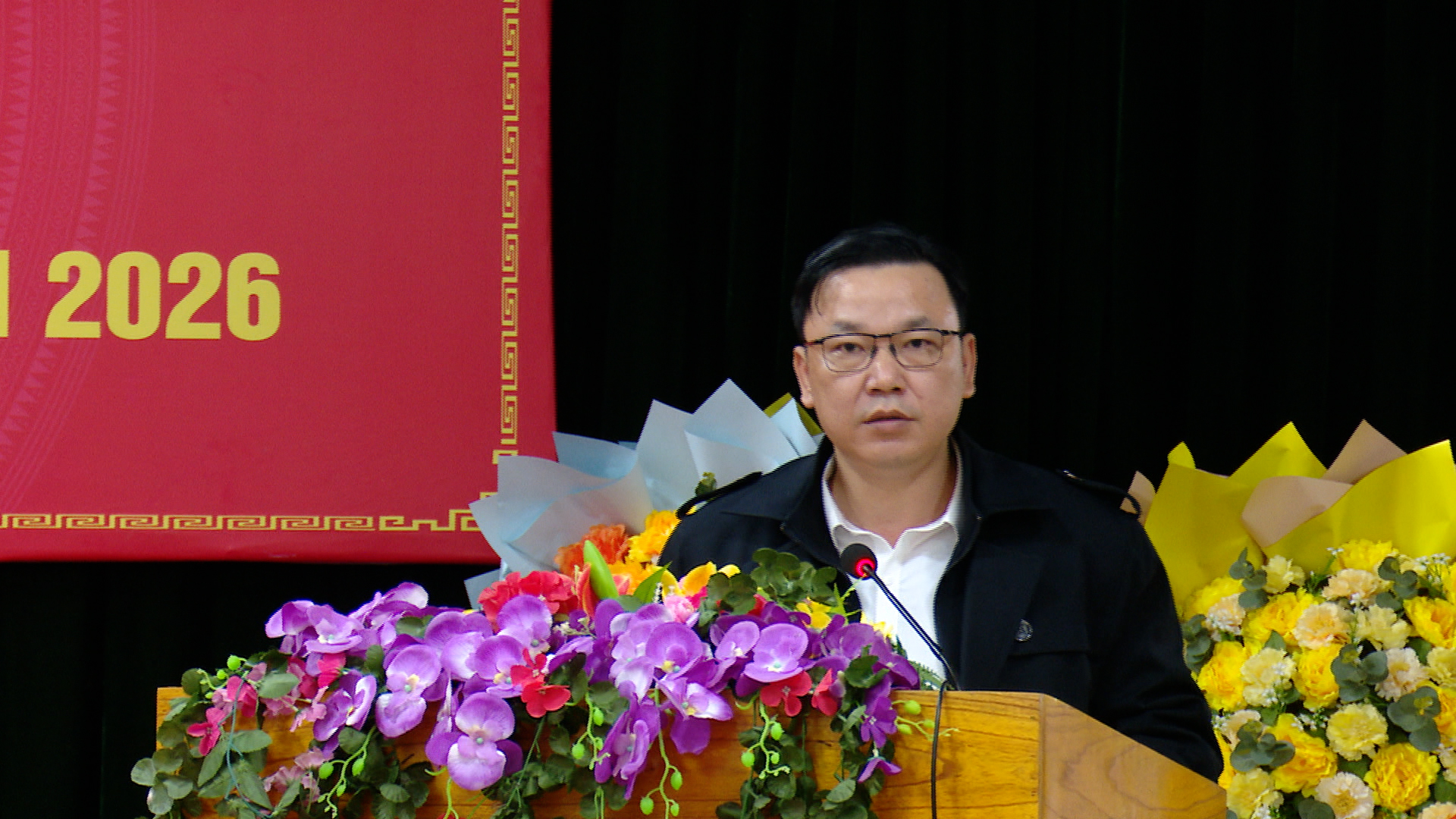 Đồng chí Triệu Văn Minh, Phó Bí thư Thường trực Đảng ủy, Chủ tịch HĐND xã phát biểu chỉ đạo tại Hội nghị