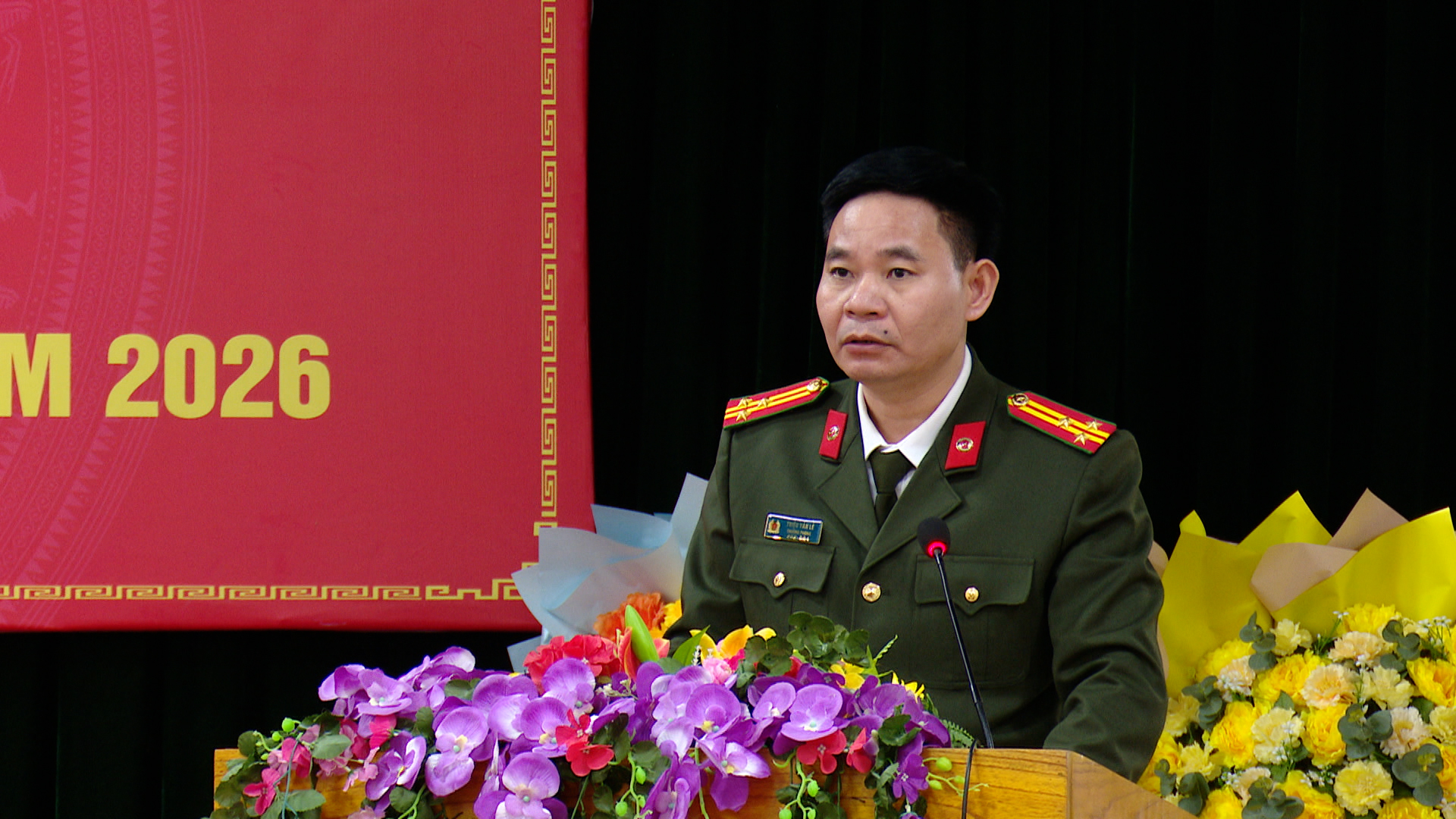 Đồng chí Thượng tá Triệu Văn Lê, Trưởng phòng An ninh kinh tế Công an tỉnh phát biểu chỉ đạo tại Hội nghị