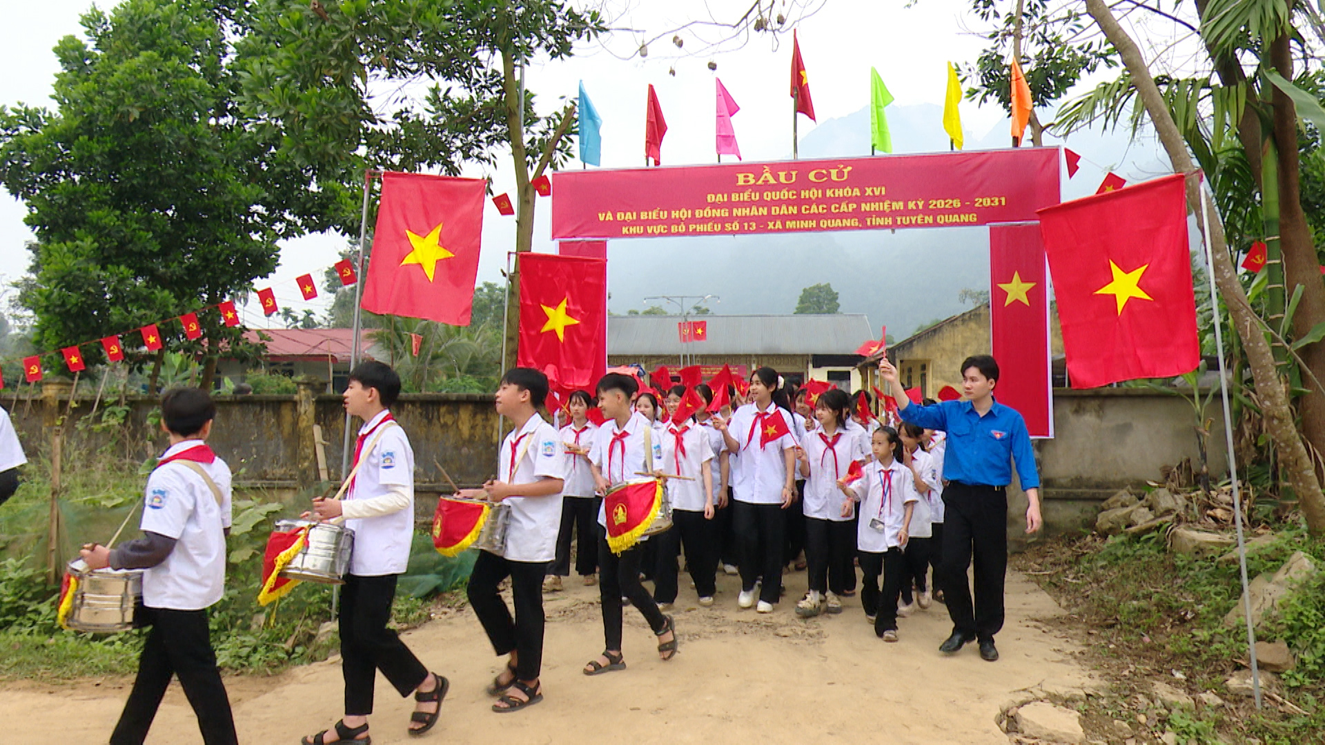 Theo đó, cán bộ, giáo viên, đoàn viên và học sinh các nhà trường đã tham gia diễu hành, mang theo cờ Tổ quốc và các biểu ngữ tuyên truyền, đi qua nhiều tuyến đường trung tâm của xã và khu vực các điểm bỏ phiếu. Hoạt động nhằm tạo không khí vui tươi, phấn khởi, góp phần nâng cao nhận thức của Nhân dân về ý nghĩa, tầm quan trọng của ngày bầu cử.