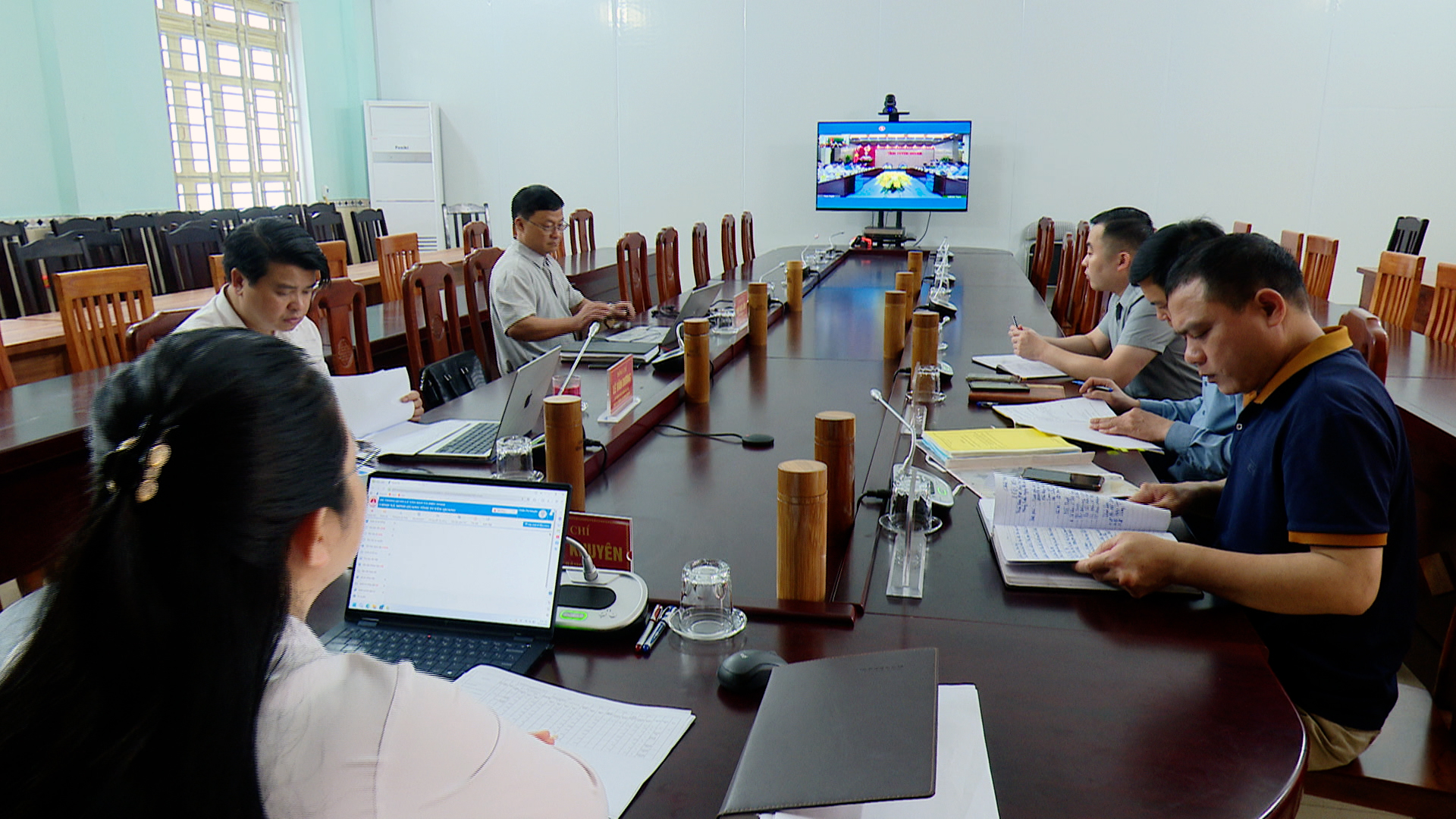 Các đồng chí đại biểu dự hội nghị tại điểm cầu xã Minh Quang