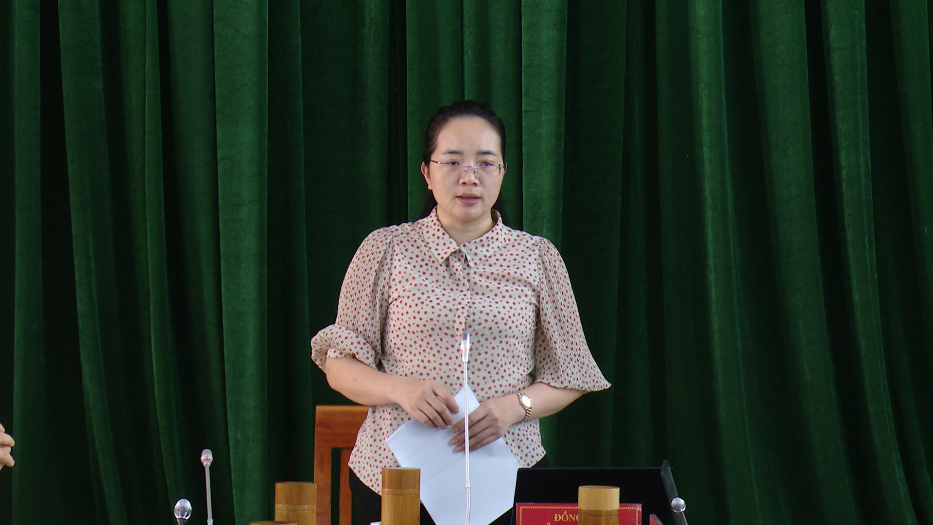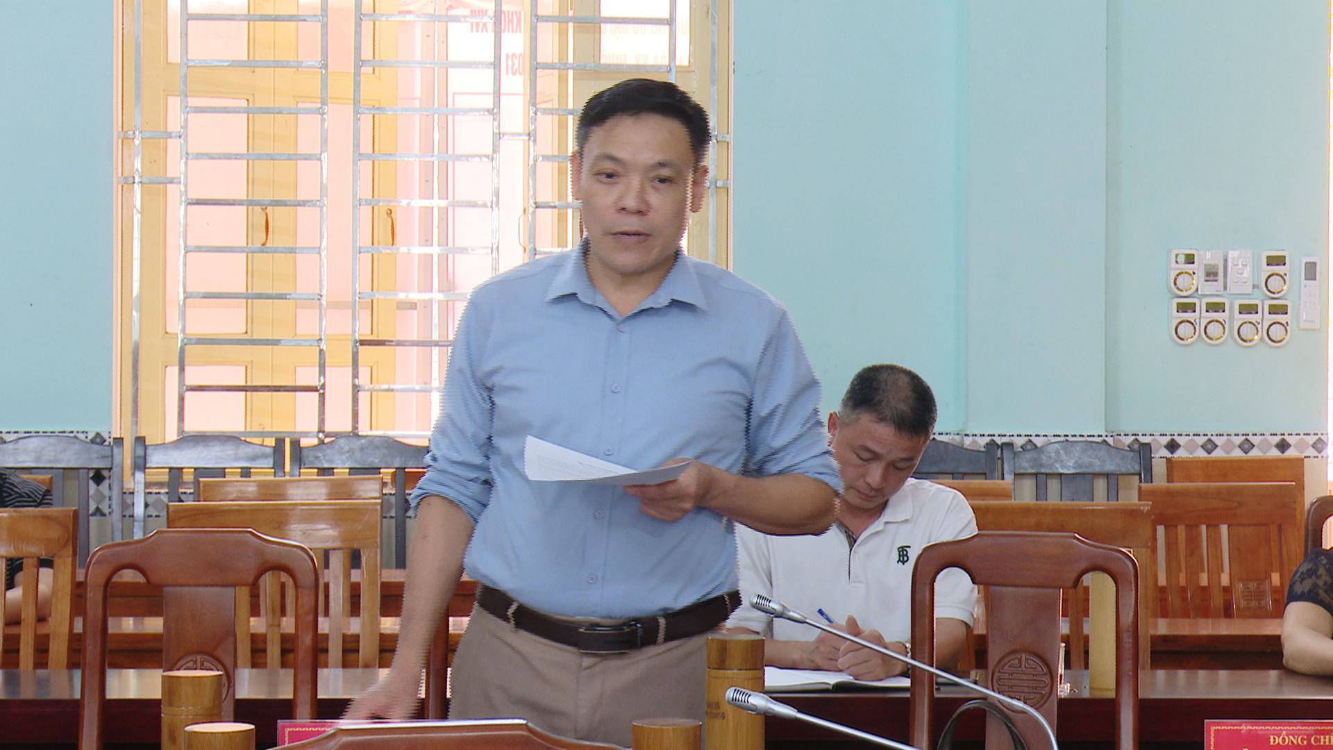 Đồng chí Chẩu Thị Khuyên, Phó Bí thư Đảng ủy, Chủ tịch UBND xã Minh Quang chủ trì hội nghị