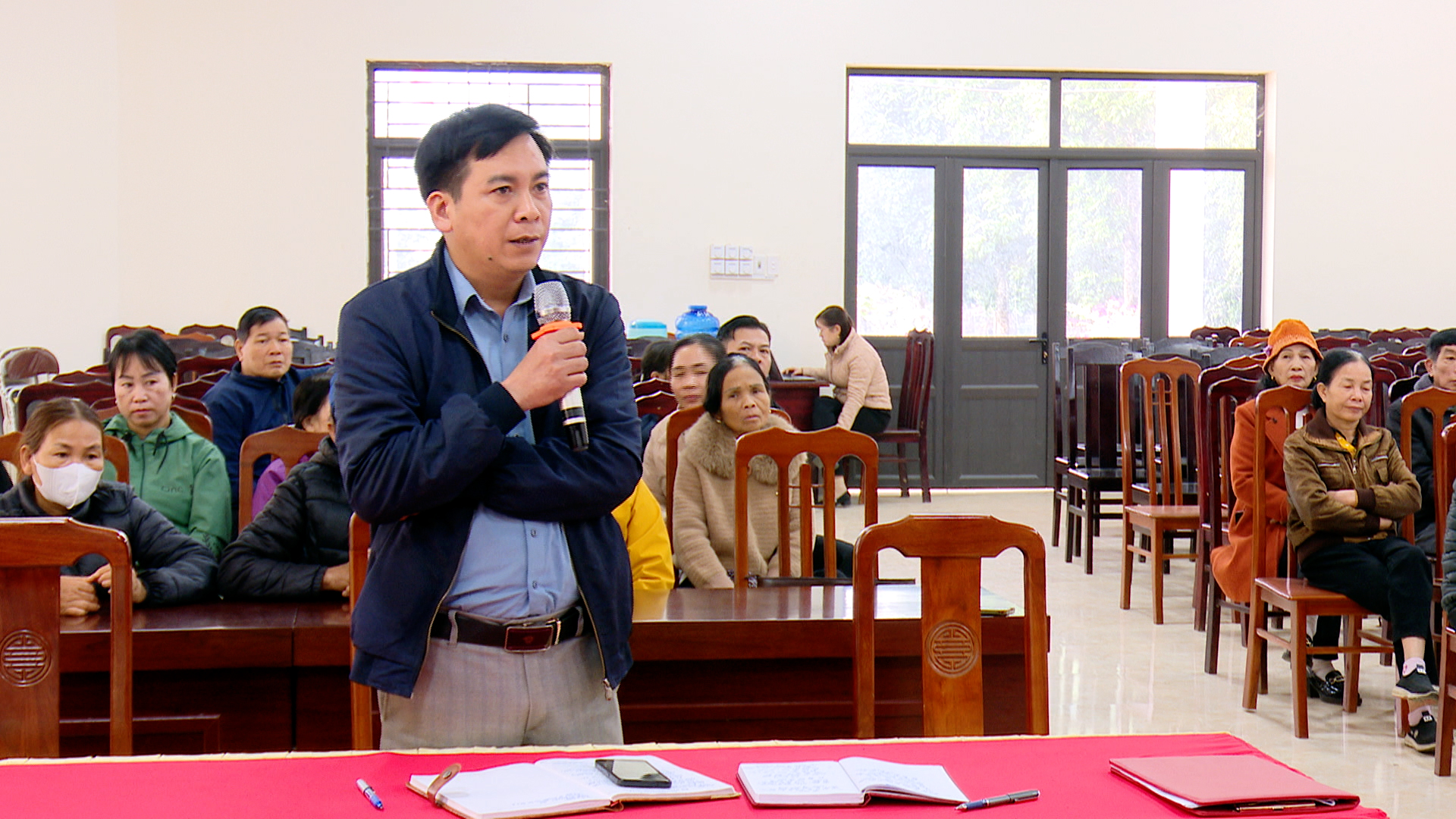 Lãnh đạo Phòng Kinh tế xã Minh Quang trả lời và tiếp thu ý kiến của cử tri