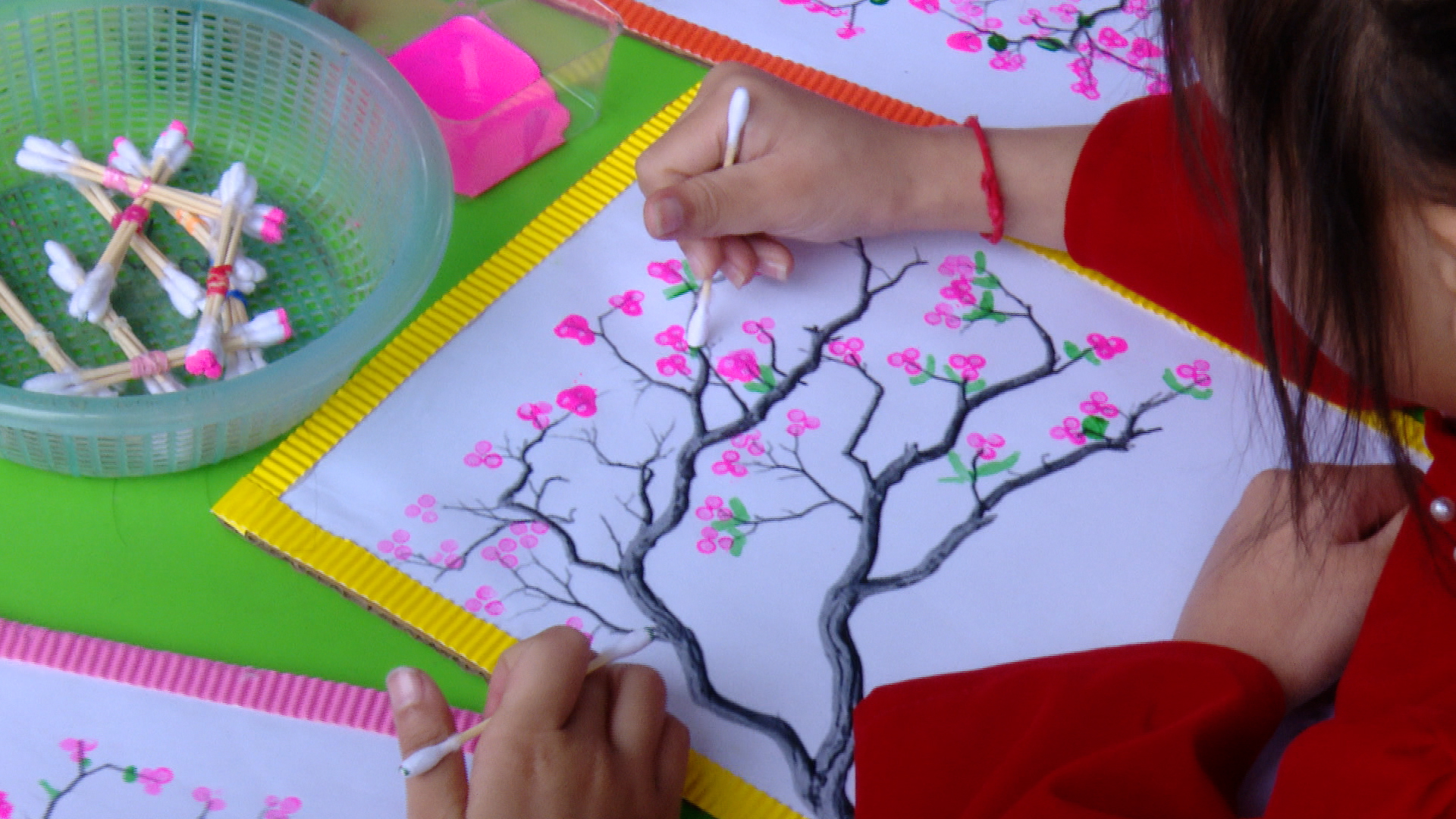 Các em được trải nghiệm nhiều hoạt động trang trí ngày Tết