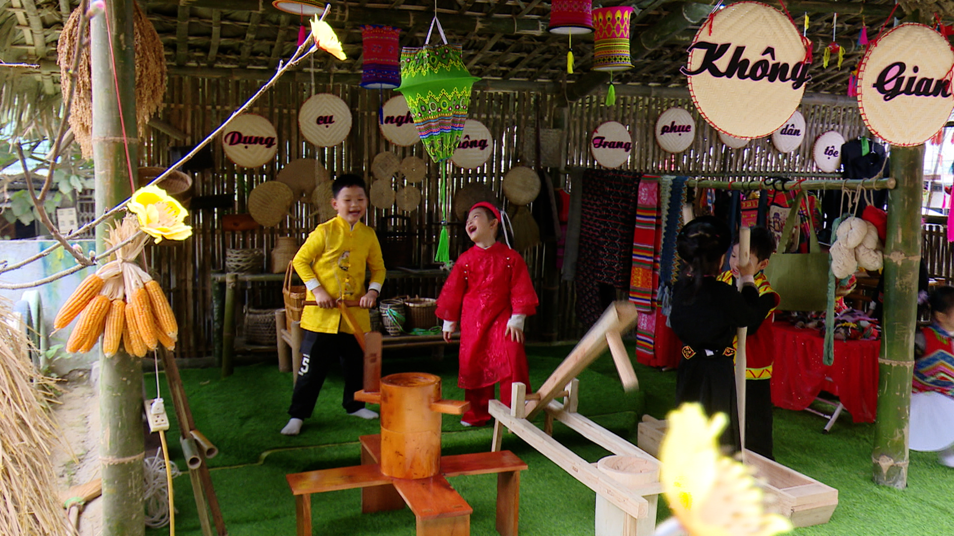 Cùng với các hoạt động vui chơi, trải nghiệm, các em còn được tham quan, tìm hiểu những nét đặc trưng về bản sắc văn hoá các dân tộc thông qua không gian văn hoá truyền thống được nhà trường xây dựng và bài trí sinh động. Tại đây, trẻ được làm quen với trang phục, nhạc cụ, đồ dùng sinh hoạt, công cụ lao động sản xuất, qua đó góp phần nuôi dưỡng tình yêu quê hương, nâng cao ý thức gìn giữ và trân trọng các giá trị văn hoá truyền thống của đồng bào các dân tộc.