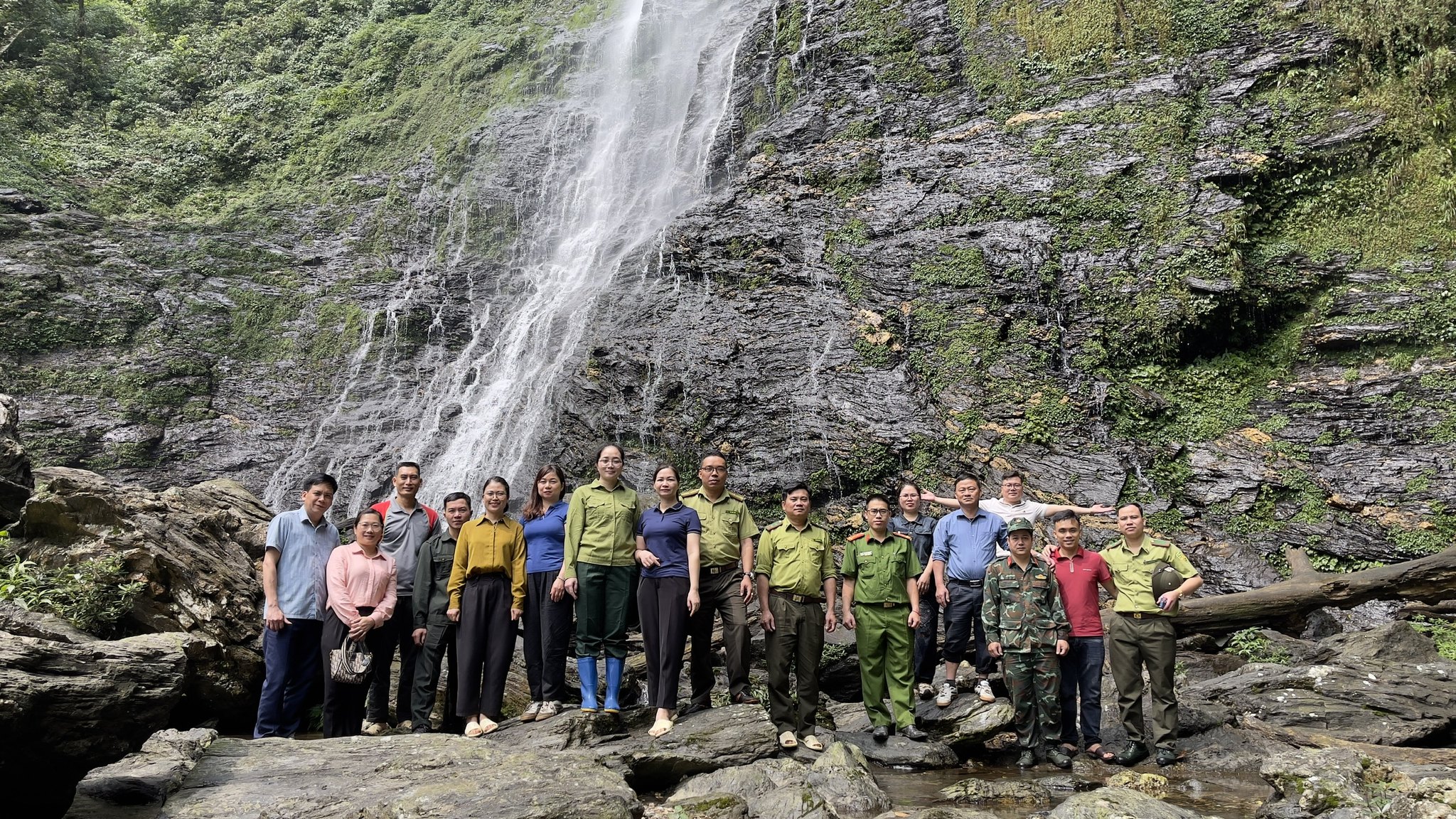 Lãnh đạo UBND xã Minh Quang khảo sát thực tế thác Tát Điền - điểm du lịch cho những du khách yêu thích khám phá, trải nghiệm