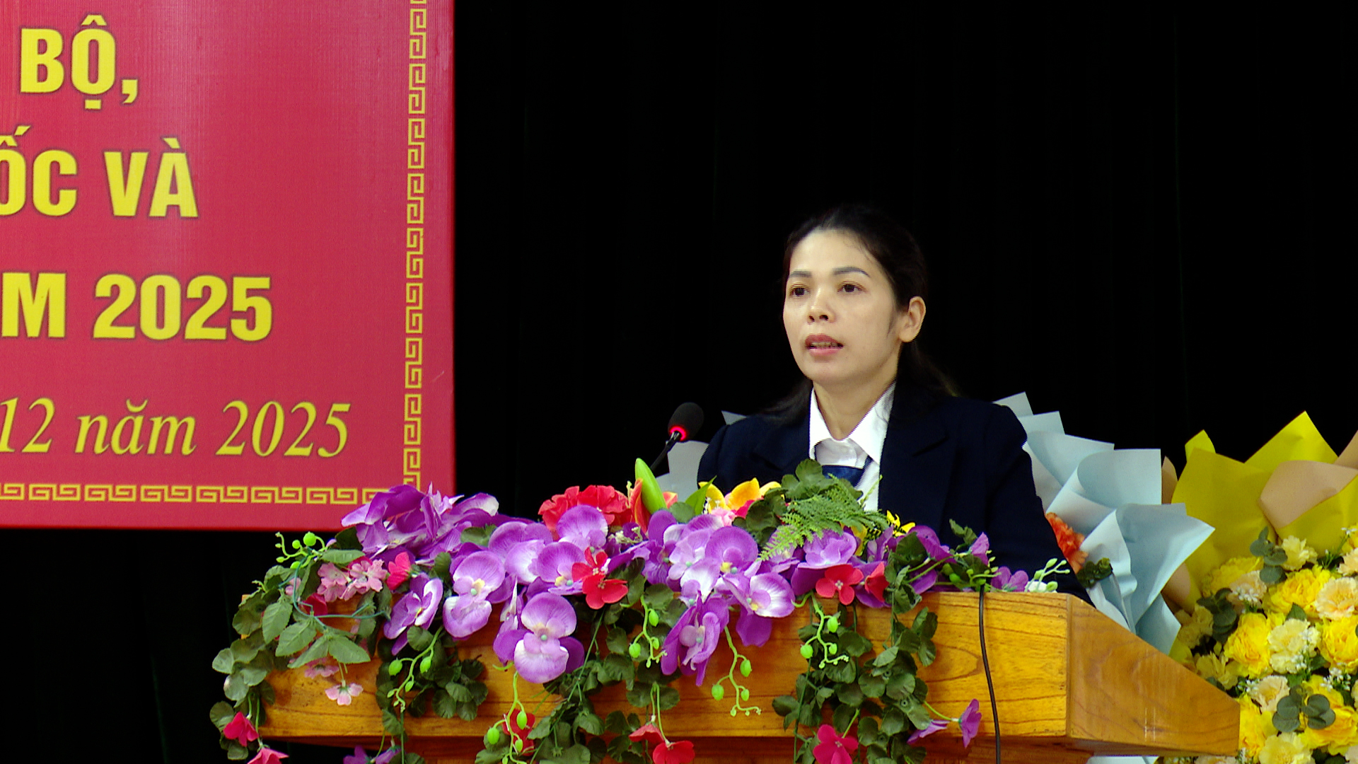 Đồng chí Quan Thị Cẩm Ninh, Phó Giám đốc Trung tâm chính trị Lâm Bình quán triệt các nội dung quan trọng tại buổi khai giảng