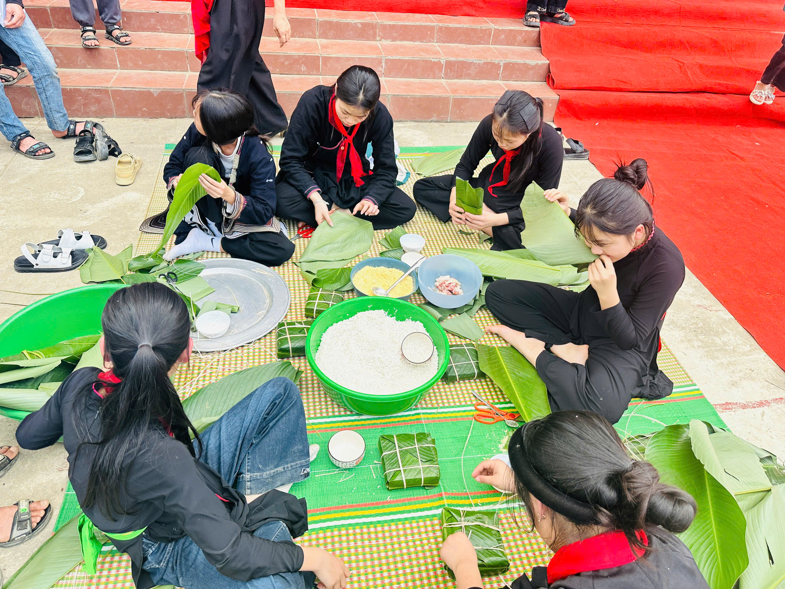 Bên cạnh hoạt động STEM, học sinh còn hào hứng tham gia các hoạt động trải nghiệm ngày Tết như: thi tô vẽ tranh chủ đề Tết, trang trí không gian Tết, gói bánh chưng xanh. Các hoạt động không chỉ tạo sân chơi vui tươi, bổ ích mà còn giúp các em hiểu sâu sắc hơn về ý nghĩa của Tết cổ truyền, từ đó hình thành ý thức trân trọng và gìn giữ bản sắc văn hóa dân tộc.