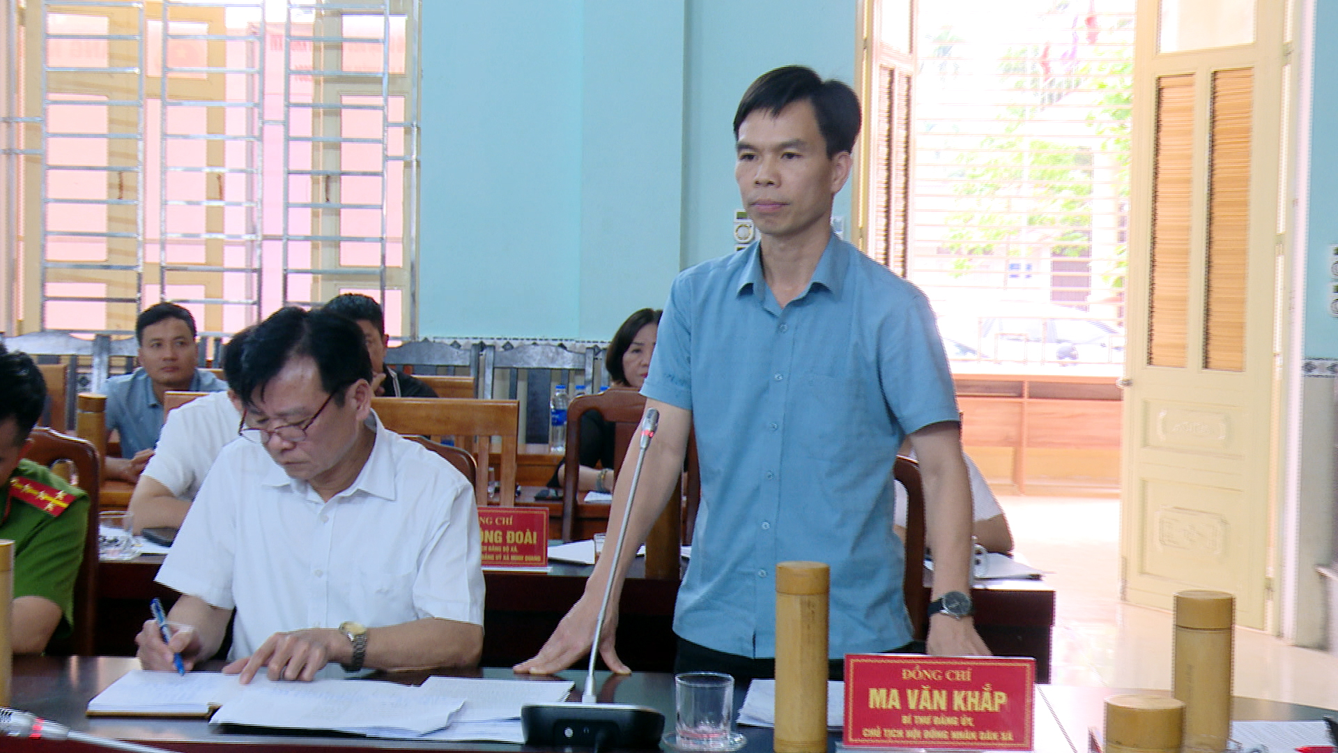 Đồng chí Ma Văn Khắp, Bí thư Đảng uỷ, Chủ tịch HĐND xã phát biểu chỉ đạo hội nghị
