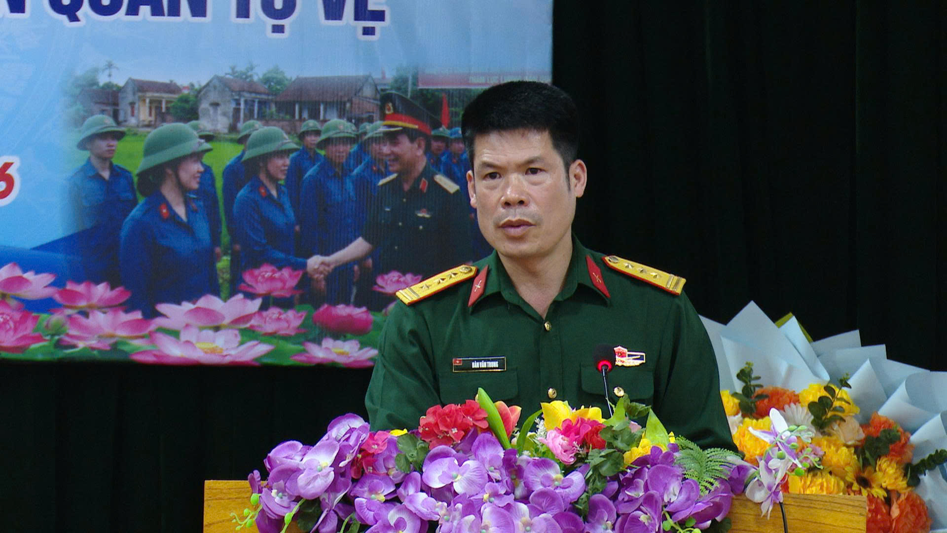 Đồng chí Chỉ huy trưởng Ban Chỉ huy quân sự xã ôn lại truyền thống vẻ vang 91 năm xây dựng, chiến đấu và trưởng thành của lực lượng Dân quân tự vệ Việt Nam.