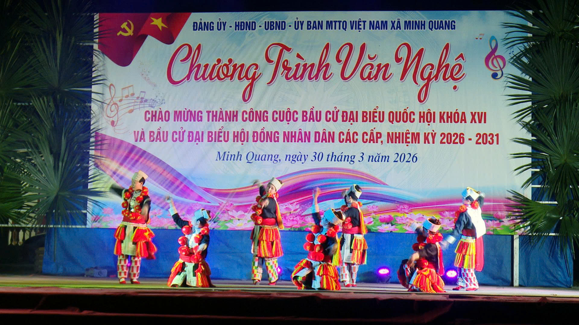 Chương trình văn nghệ diễn ra sôi nổi với nhiều tiết mục đặc sắc, mang đậm bản sắc văn hoá dân tộc, ca ngợi Đảng, Bác Hồ, quê hương, đất nước. Các tiết mục do môyj số đơn vị trường học, câu lạc bộ văn hoá, văn nghệ của xã biểu diễn; đồng thời có sự tham gia tích cực của một số cơ quan, đơn vị như Hội Liên hiệp Phụ nữ, Ban Chỉ huy Quân sự xã, Công an xã… tạo nên sự đa dạng, phong phú và sức lan toả mạnh mẽ cho chương trình. Thông qua chương trình nhằm tuyên truyền, khẳng định ý nghĩa, tầm quan trọng của cuộc bầu cử; đồng thời tạo không khí vui tươi, phấn khởi, cổ vũ cán bộ, đảng viên và Nhân dân tiếp tục thi đua lao động, sản xuất, góp phần thực hiện thắng lợi các mục tiêu phát triển kinh tế - xã hội của địa phương trong nhiệm kỳ mới.