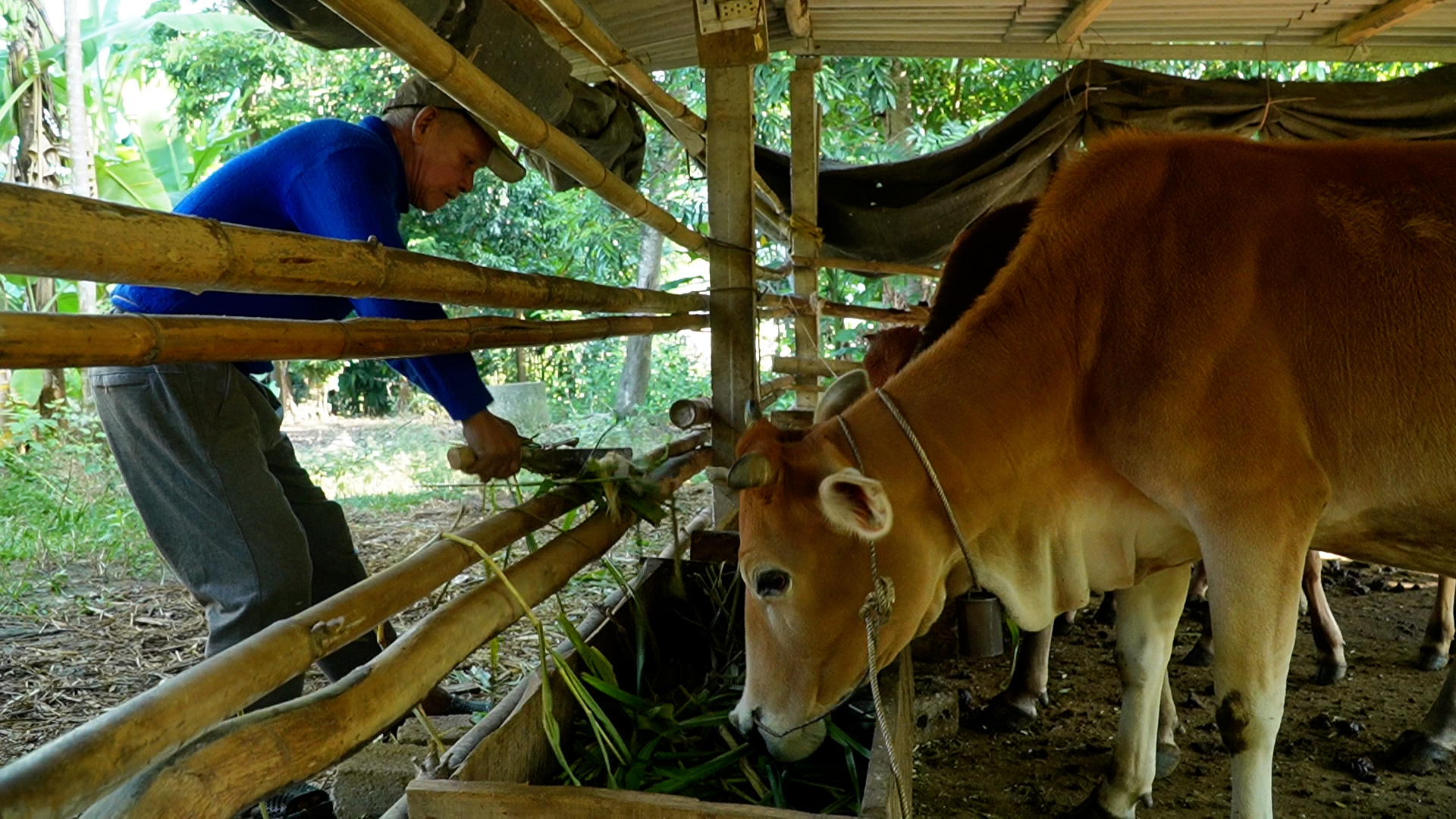 Ông Ma Văn Coóng thôn Bản Đồn chăm sóc đàn bò của gia đình